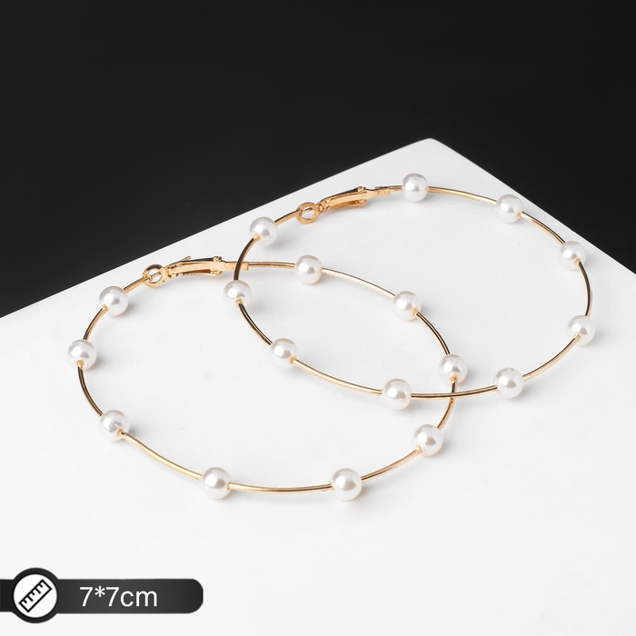 Серьги-кольца «Бусинки», шар 6, цвет белый в золоте, d=7 см