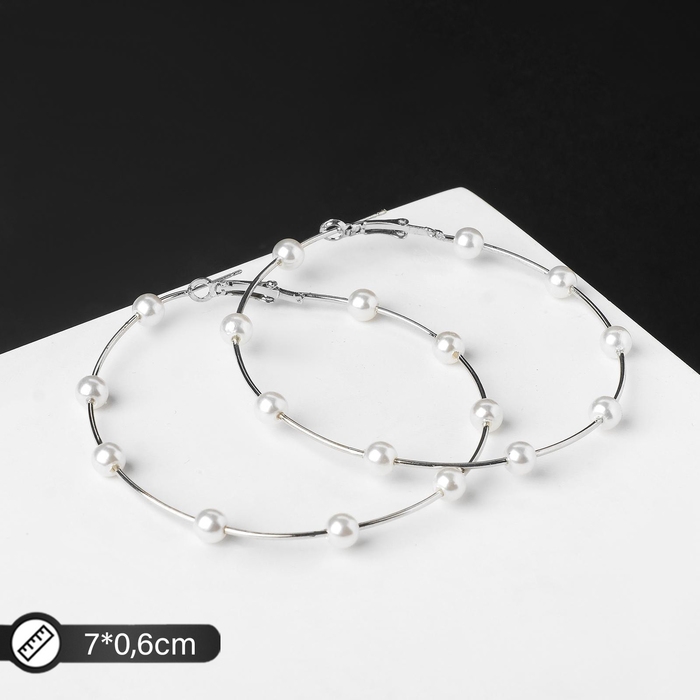 Серьги-кольца «Бусинки», шар 6, d=7 см цвет белый в серебре