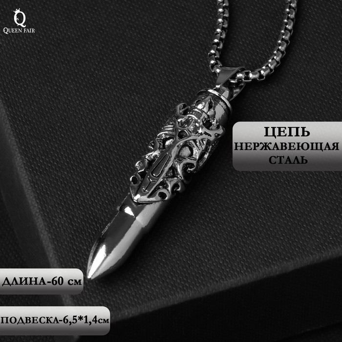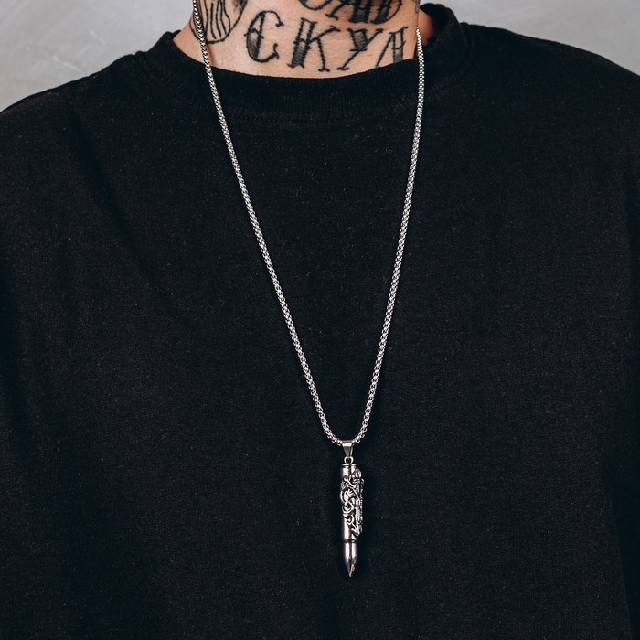 Кулон унисекс «Пуля» резной рисунок, цвет чернёное серебро, 60 см