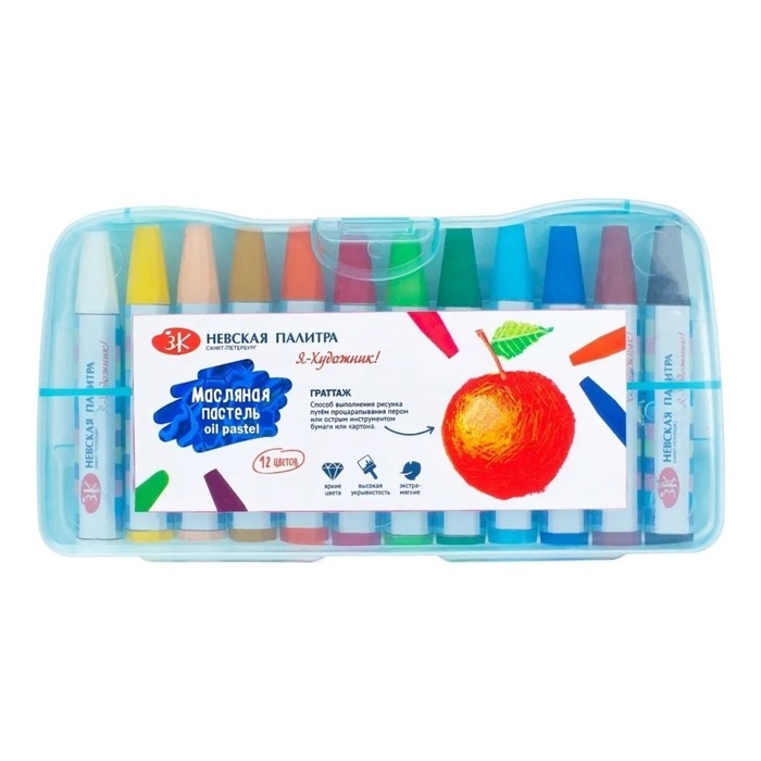 Масляная пастель 12 цветов мягкая в картонной коробке, европодвес
