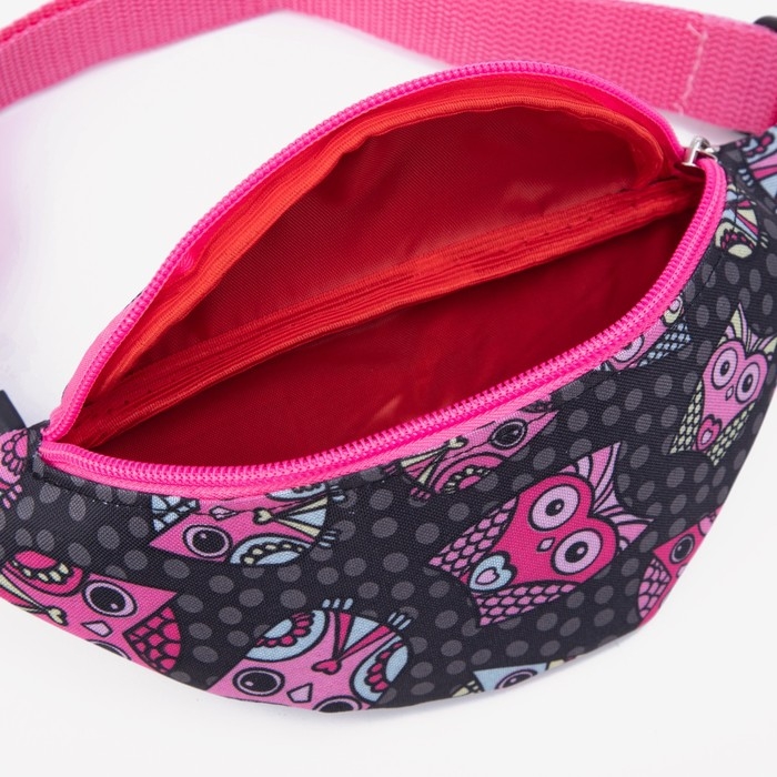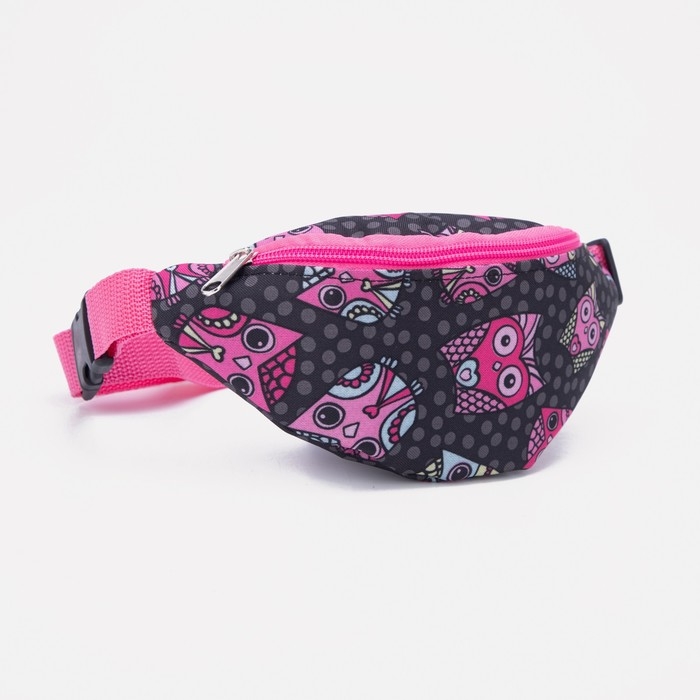 Сумка поясная детская на молнии, цвет чёрный/розовый
