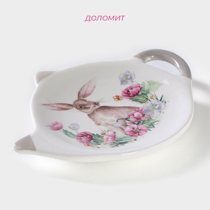 Подставка под чайный пакетик Доляна «Зайка», 12×9 см, цвет белый