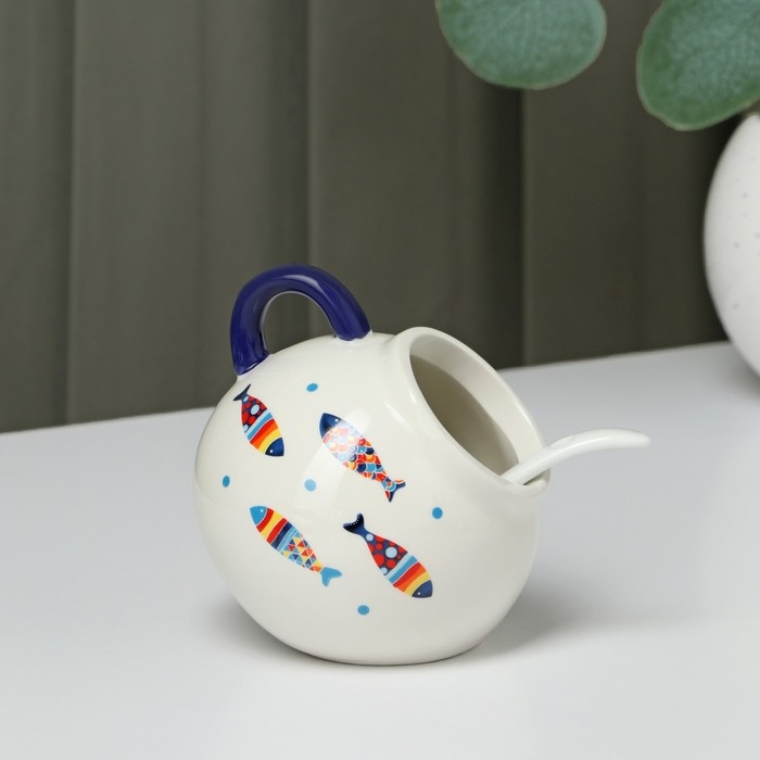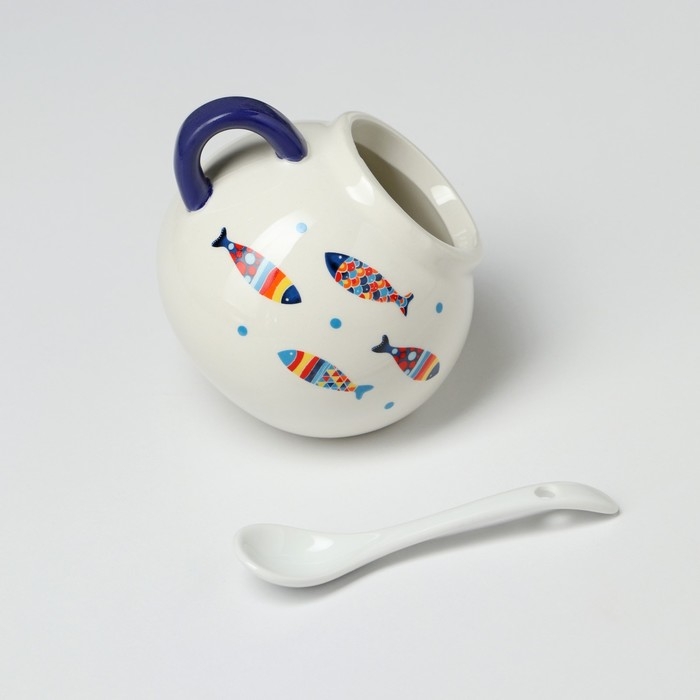 Сахарница с ложкой Доляна «Емеля», 200 мл, цвет белый