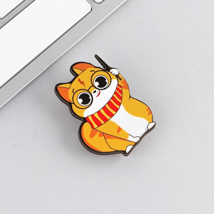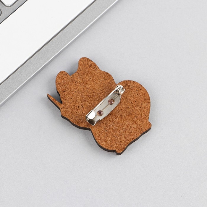 Значок деревянный «Котик», 3,2 х 4 см