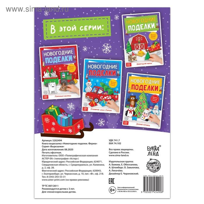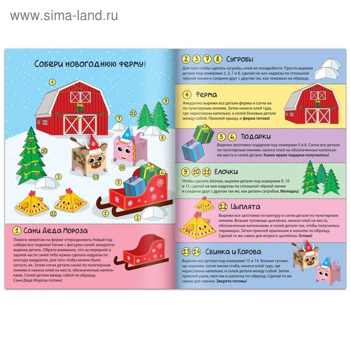 Книга-вырезалка «Новогодние поделки. Ферма», 20 стр.