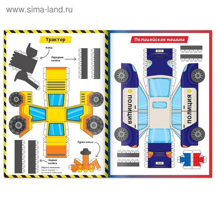 Книга-вырезалка «Бумажные машины», 8 поделок, 20 стр., формат А4