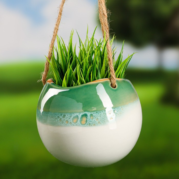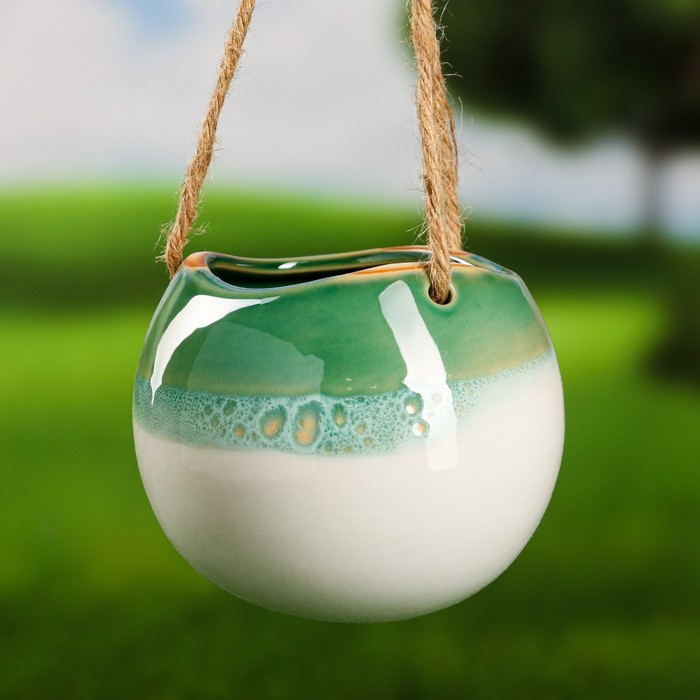 Кашпо подвесное "Круглое" зеленое, 11х11х9см