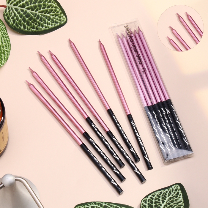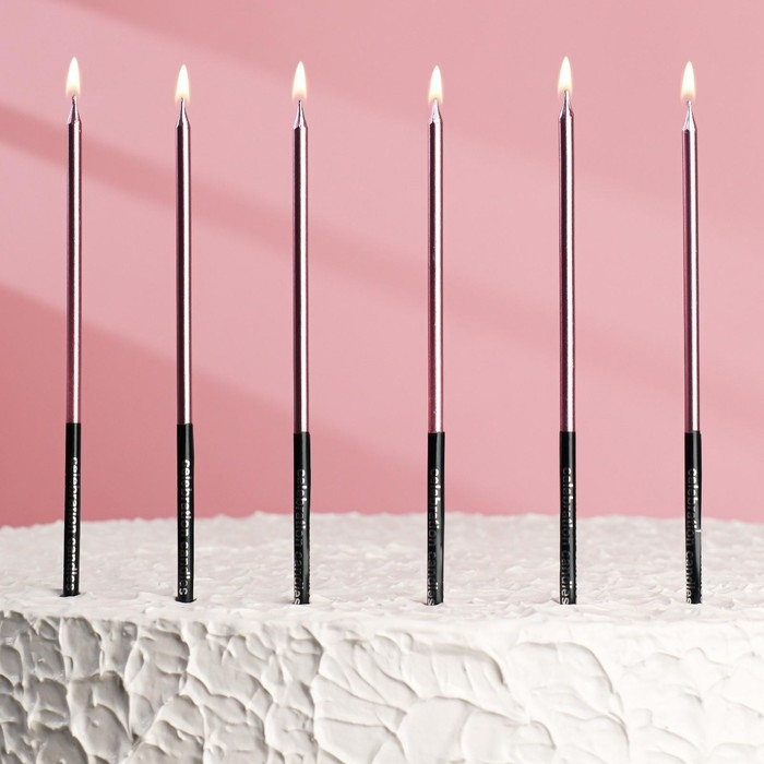 Свечи в торт "Праздник", 6 шт, 14,5 см, розовый с чёрным