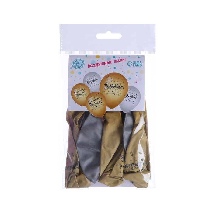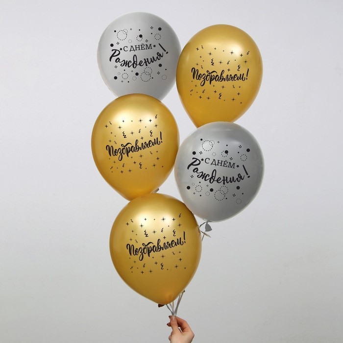 Воздушный шар латексный 12" «С днём рождения», поздравляем, 5 шт.