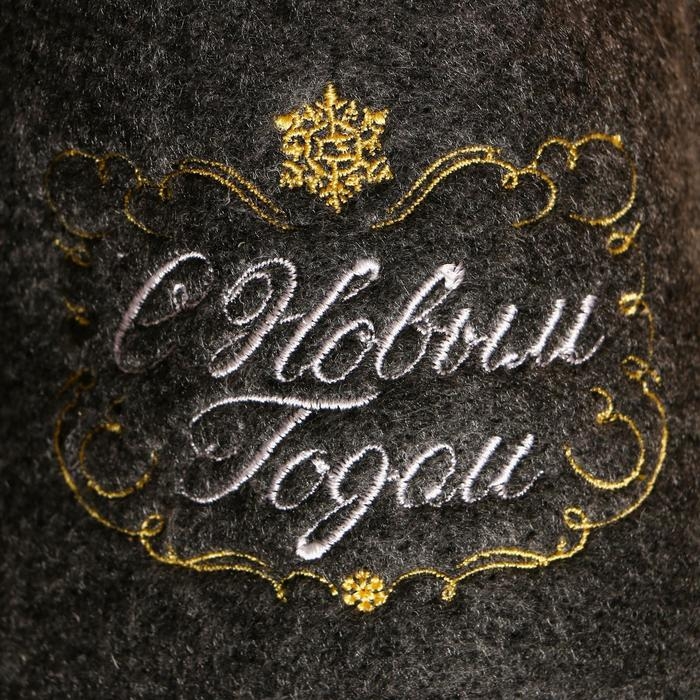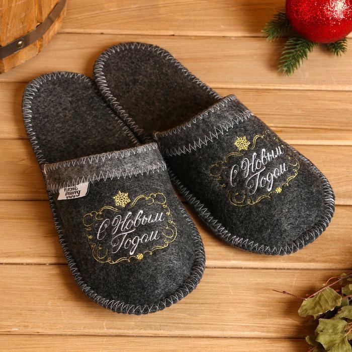 Тапочки банные серые с вышивкой "С Новым Годом (вензель)"