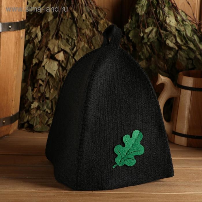 Шапка для бани с аппликацией "Дубовый лист" черный