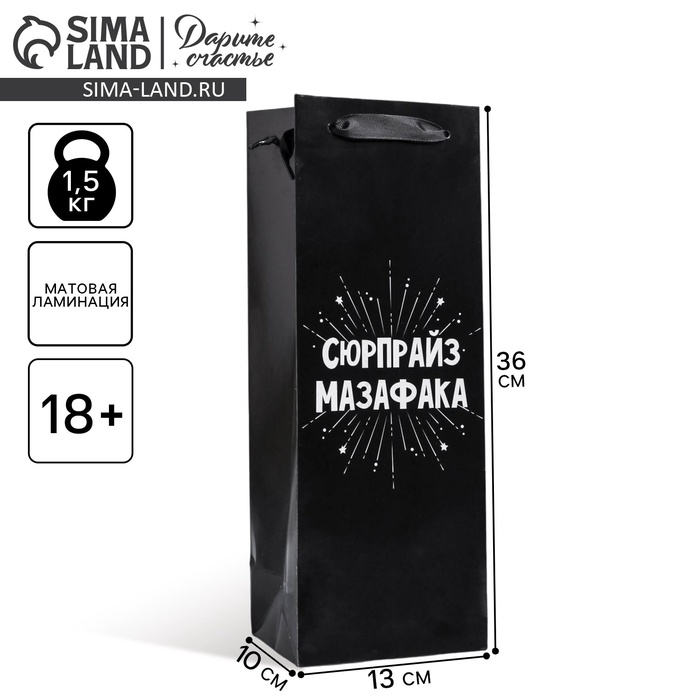 Пакет подарочный ламинированный под бутылку, упаковка, «Сюрпрайз», 13 x 35 x 10 см