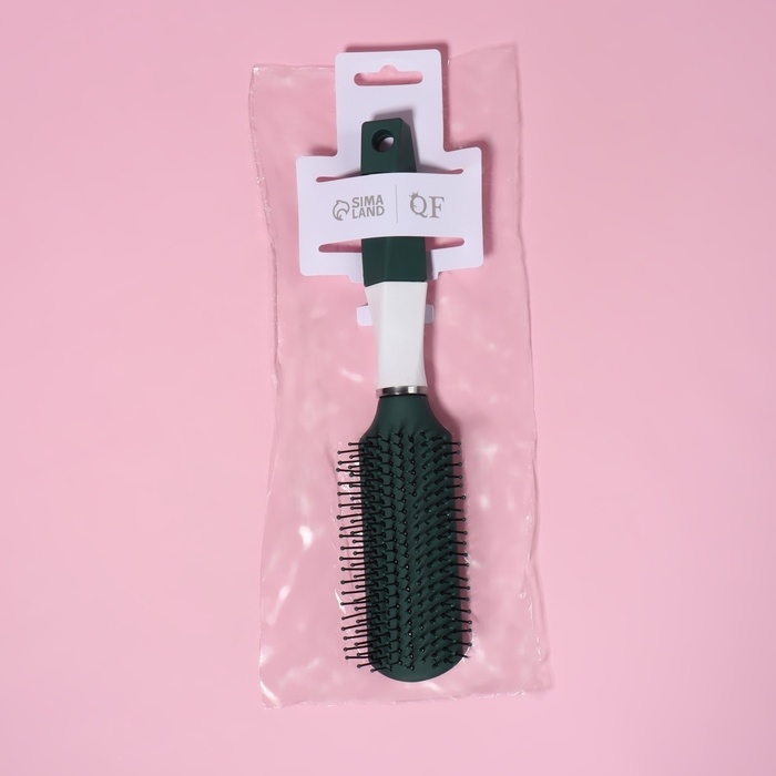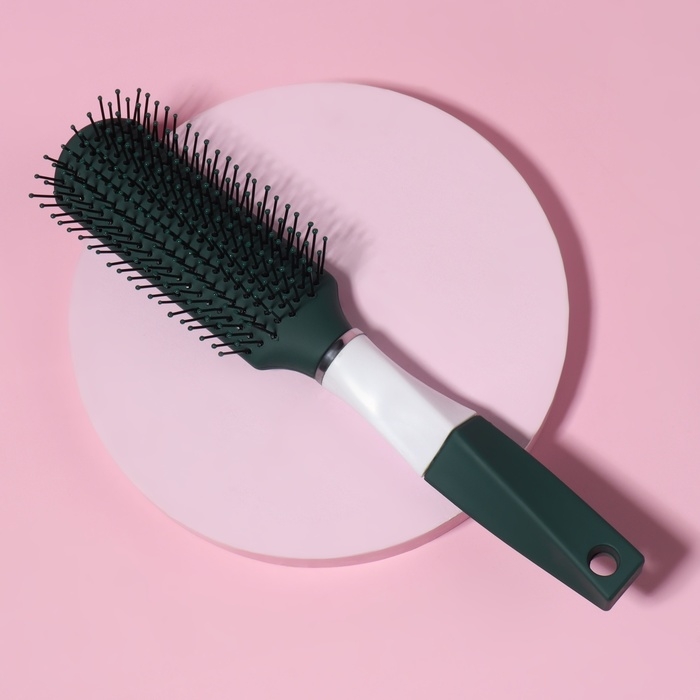 Расчёска массажная, прорезиненная ручка, 4 × 23 см, цвет зелёный/белый