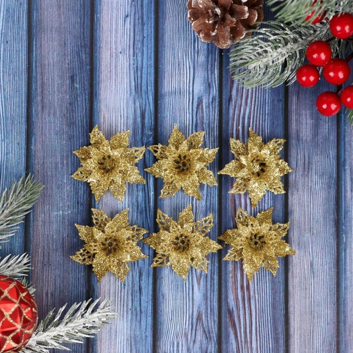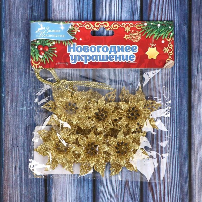 Украшение ёлочное "Волшебные цветы" (набор 6 шт) 4 см, золото