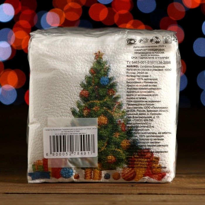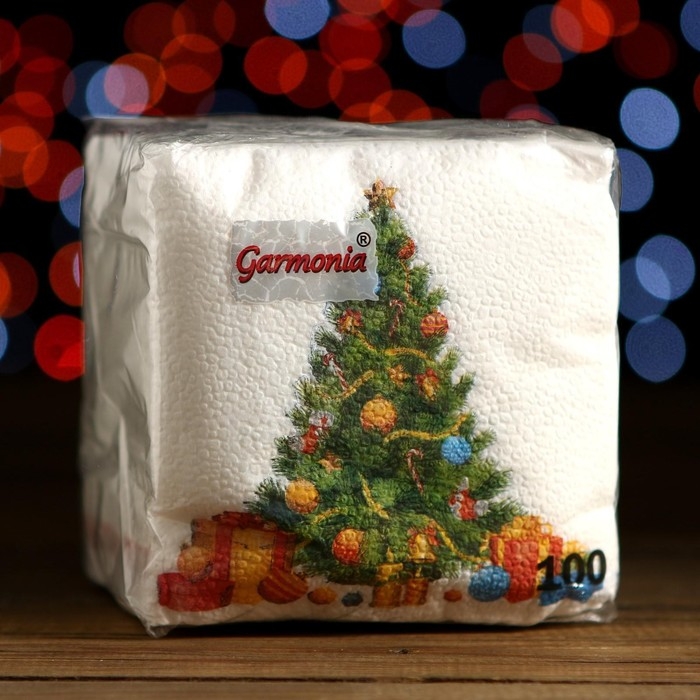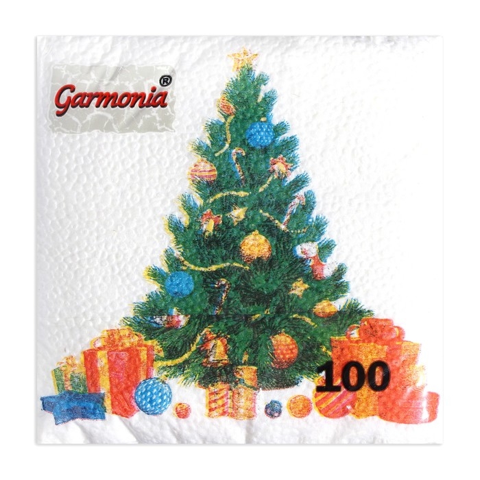 Новый год. Салфетки бумажные Гармония цвета многоцветие "Елка", 24*24 см 100 листов