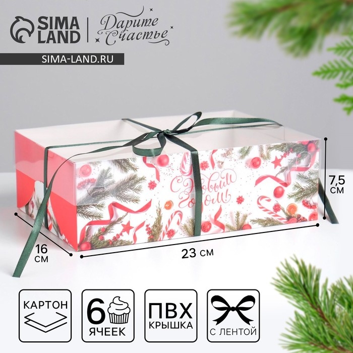 Коробка для капкейка «С Новым годом!», 23 х 16 х 7.5 см, Новый год