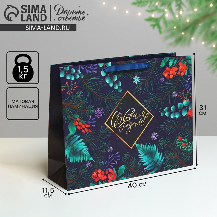 Пакет подарочный новогодний ламинированный «Роскошь волшебства», L 40 х 31 х 11,5 см, Новый год