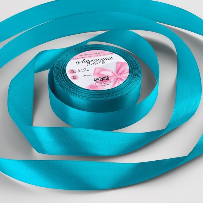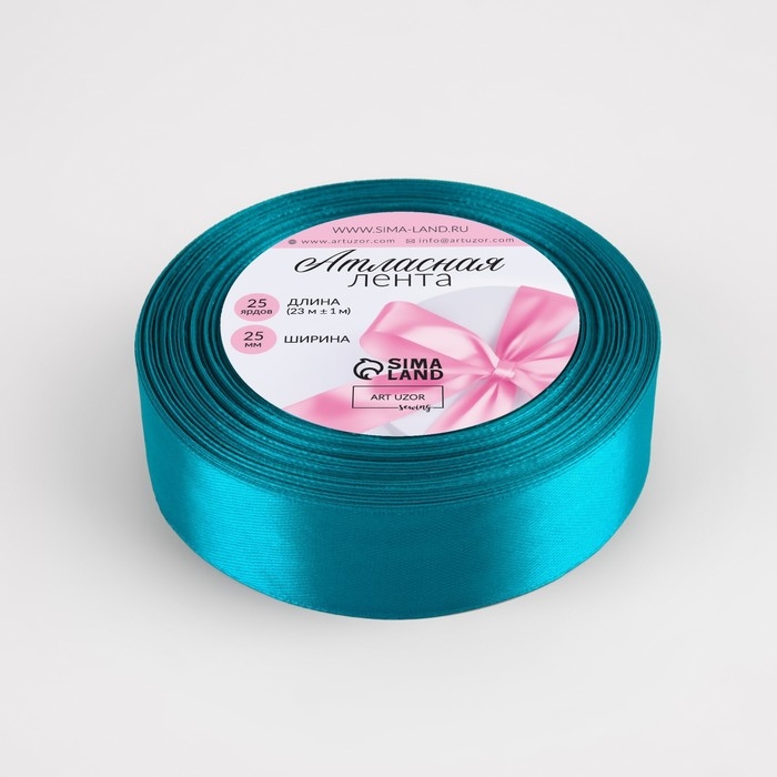 Лента атласная, 25 мм × 23 ± 1 м, цвет морская волна №47