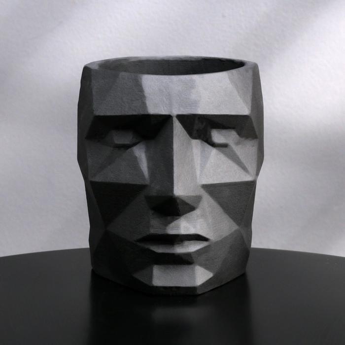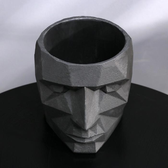 Кашпо полигональное из гипса «Голова», цвет чёрный, 11 × 12 см