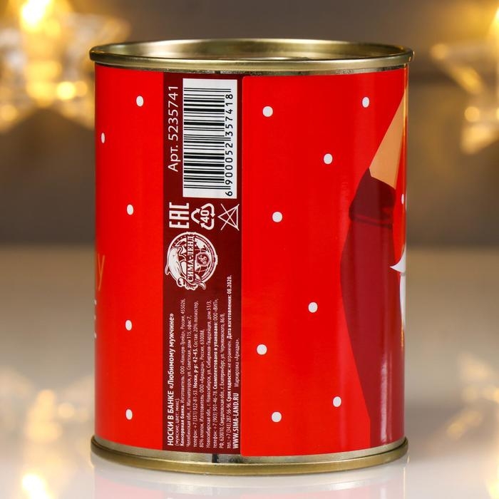 Носки в банке "Любимому мужчине" (внутри носки мужские, цвет чёрный)