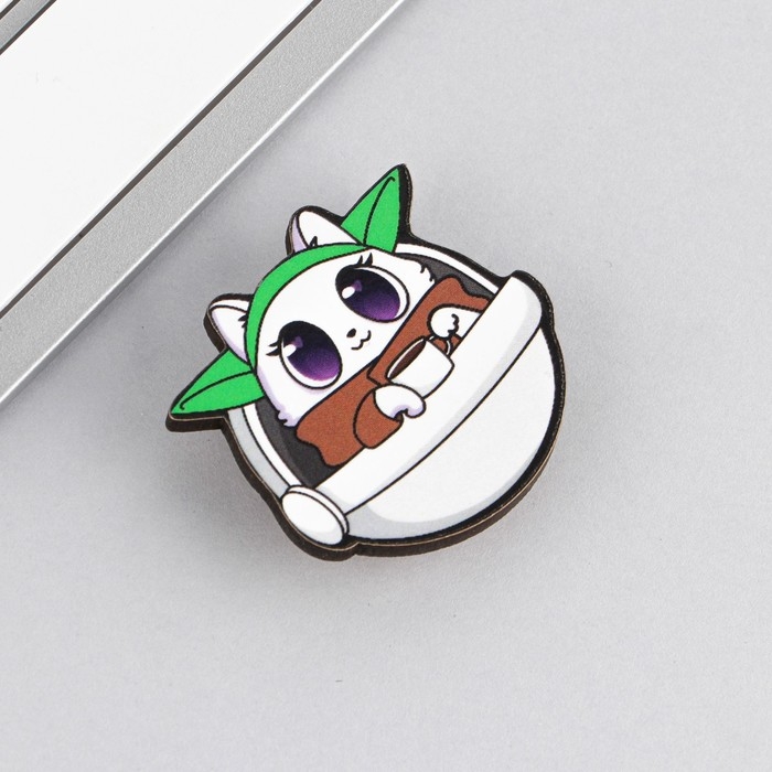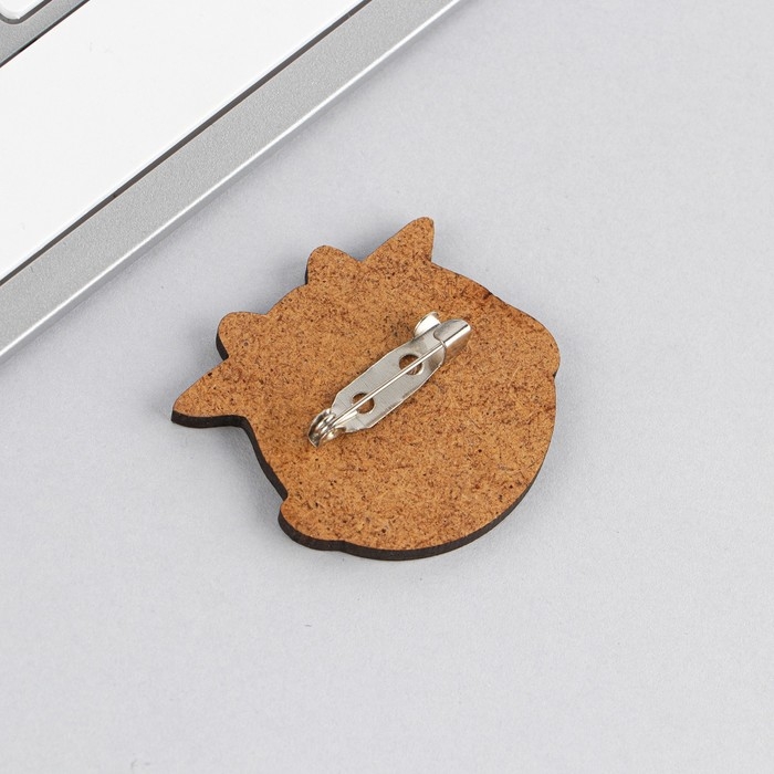 Значок деревянный «Котик», 3,2 х 4 см