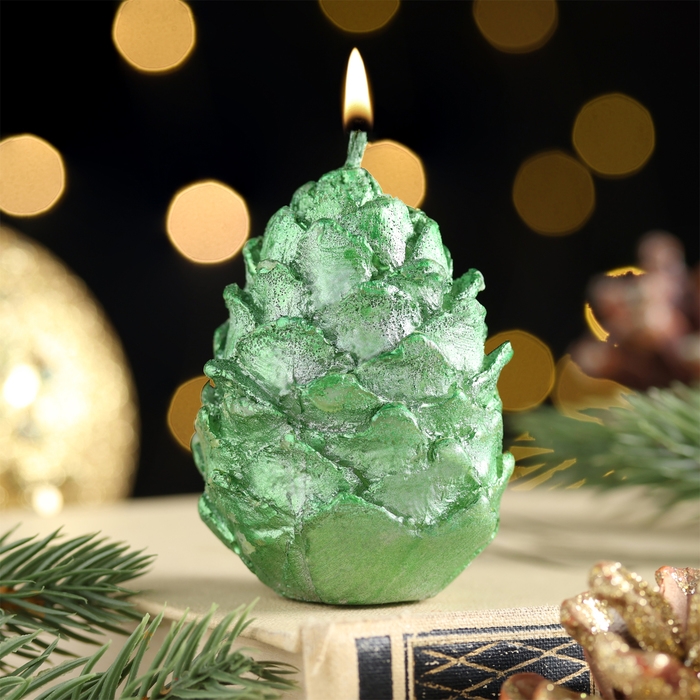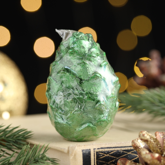 Свеча лакированная "Шишка", Зёлёная, 6 см