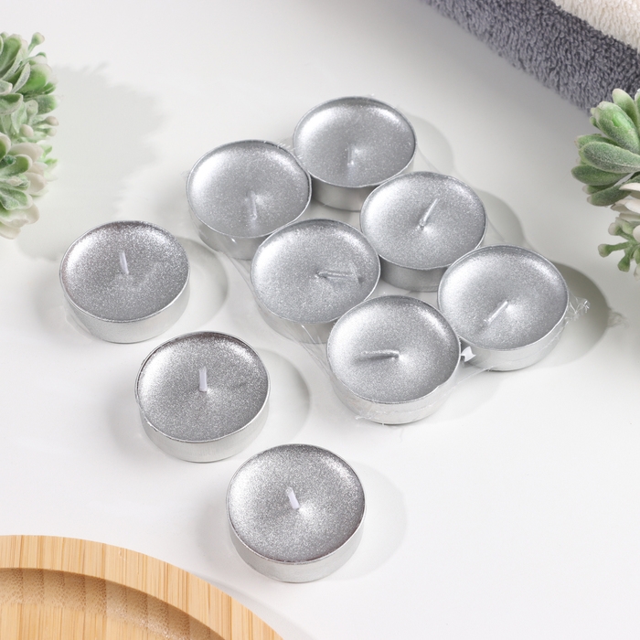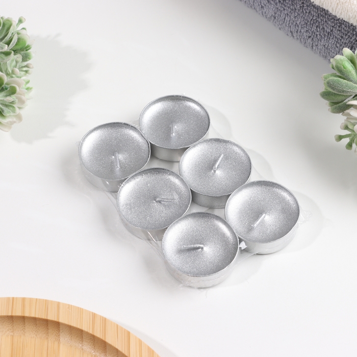 Свеча в гильзе "Шайба", Серебро, 6 шт