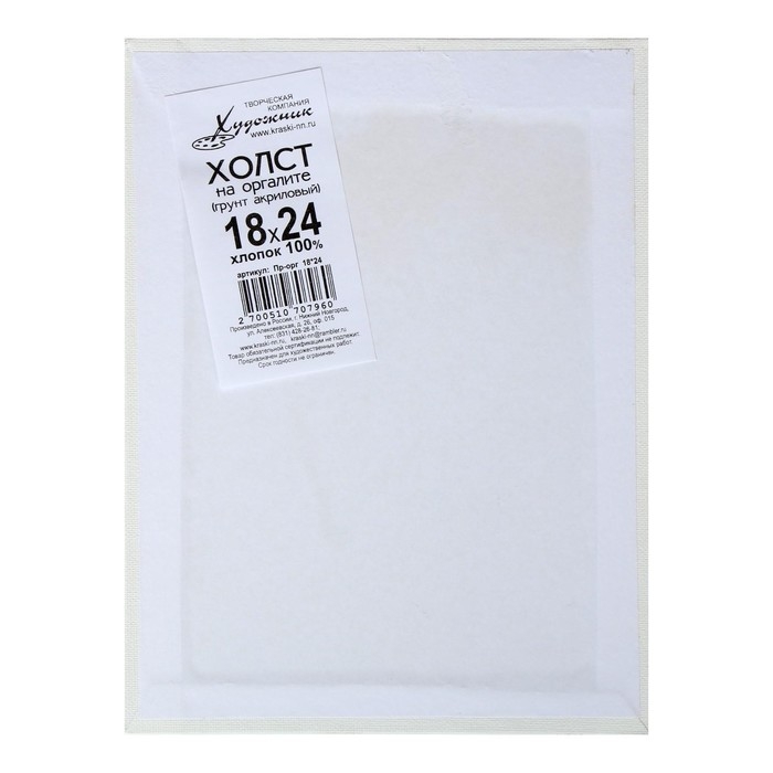 Холст на оргалите 4 мм, 18 х 24 см, хлопок 100%, акриловый грунт, мелкозернистый, 210 г/м²