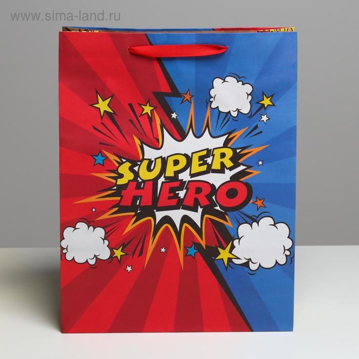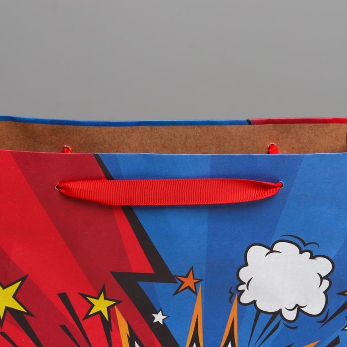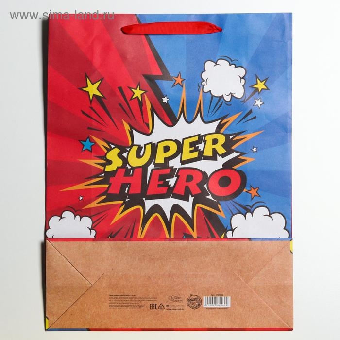 Пакет подарочный крафтовый вертикальный, упаковка, «Супер герой», L 31 х 40 х 11,5 см
