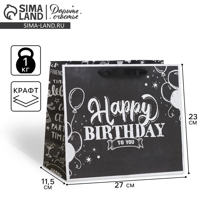 Пакет подарочный крафтовый горизонтальный, упаковка, Happy birthday, ML 27 х 23 х 11.5 см