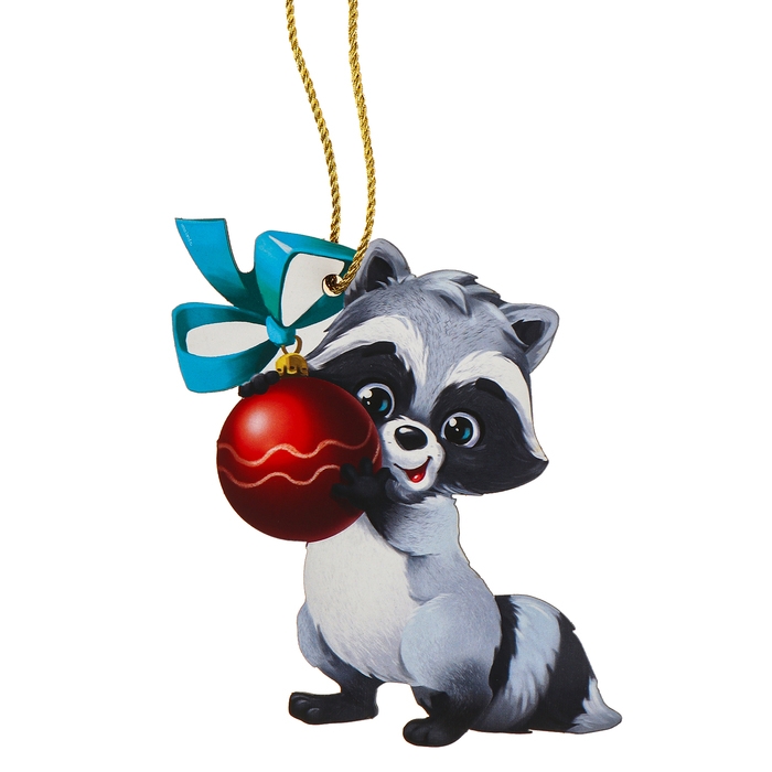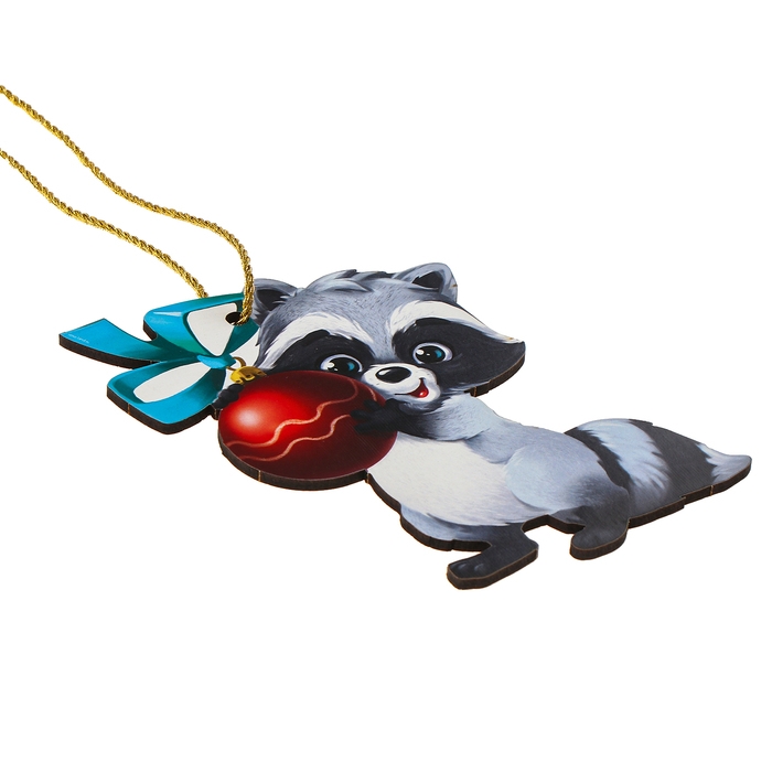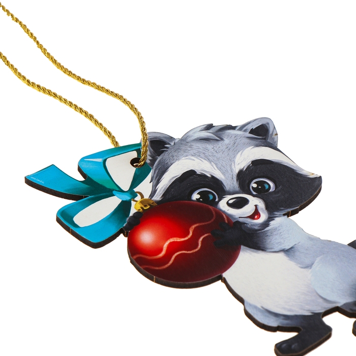Ёлочная деревянная подвеска «Новый год! Енотик»