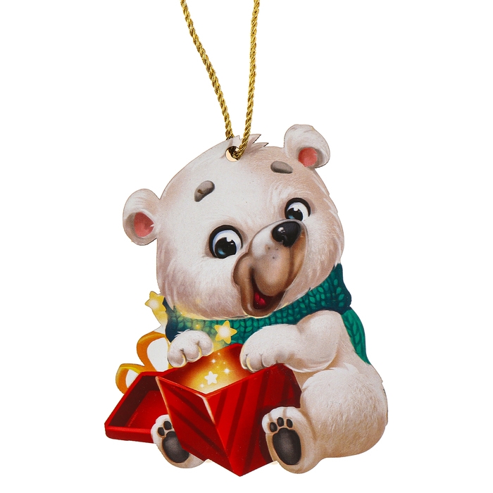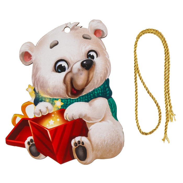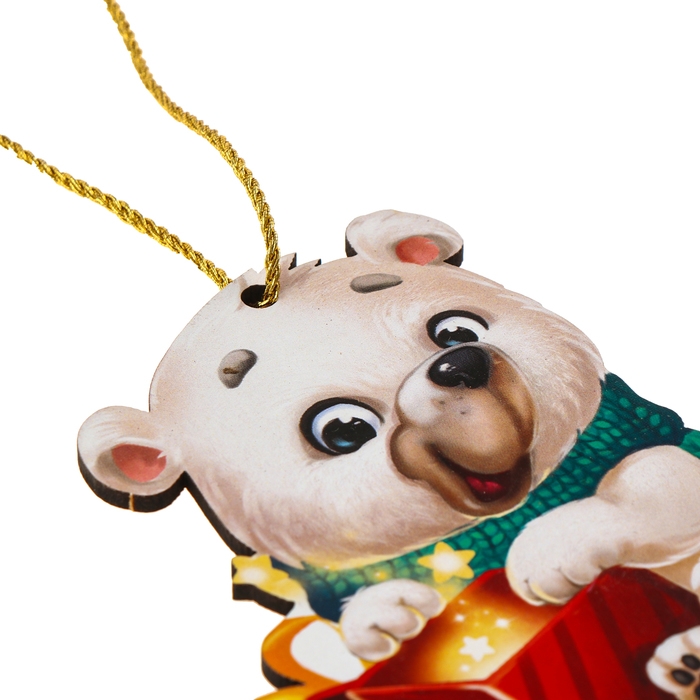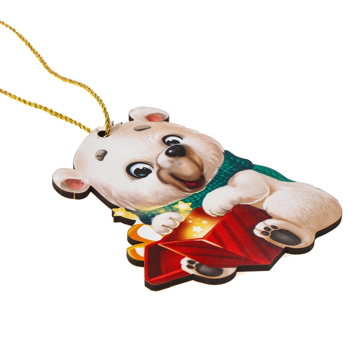 Ёлочная деревянная подвеска «Новый год! Белый мишка»