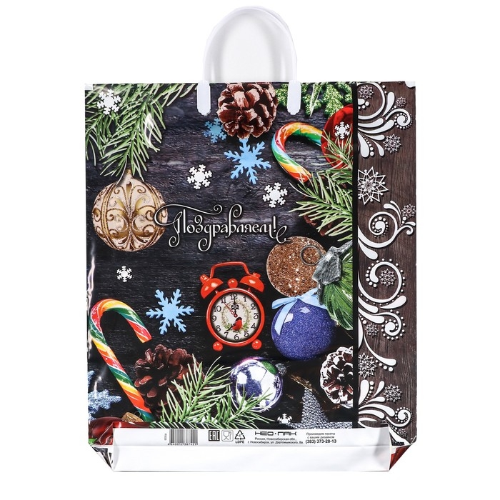 Новый год. Пакет "Новый год", полиэтиленовый с пластиковой ручкой, 40 х 44 см.