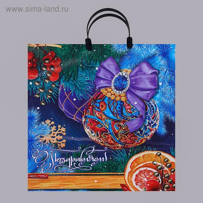 Новый год. Пакет "Шар с бантом", полиэтиленовый с пластиковой ручкой, 38х44 см.