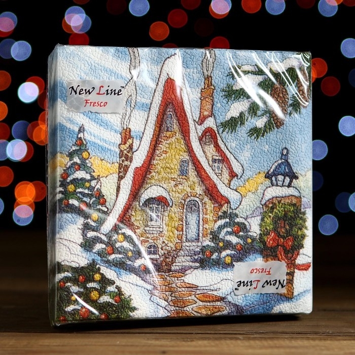 Новый год. Салфетки бумажные New Line FRESCO Зимний домик 2 слоя 20 листов