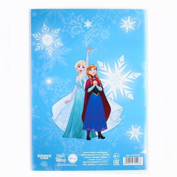 Картон белый, А4, 8 листов, мелованный, односторонний, в папке, 210, г/м², Холодное сердце
