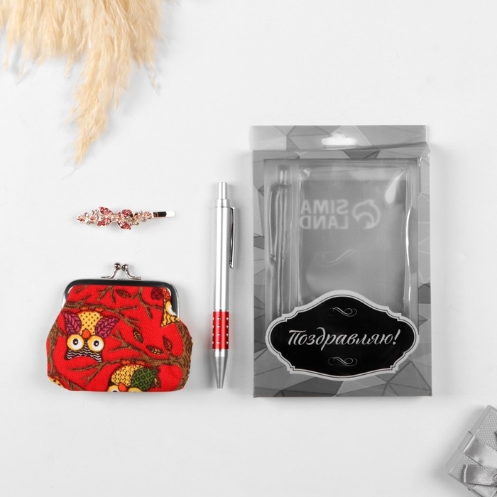 Набор подарочный 3в1 (ручка, кошелек, заколка)