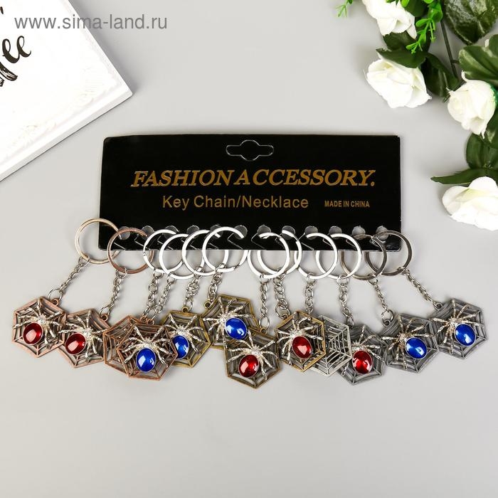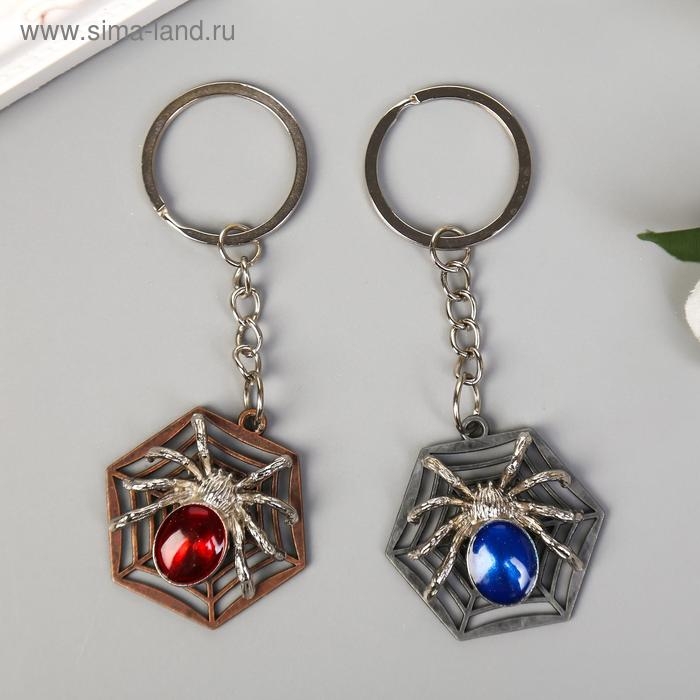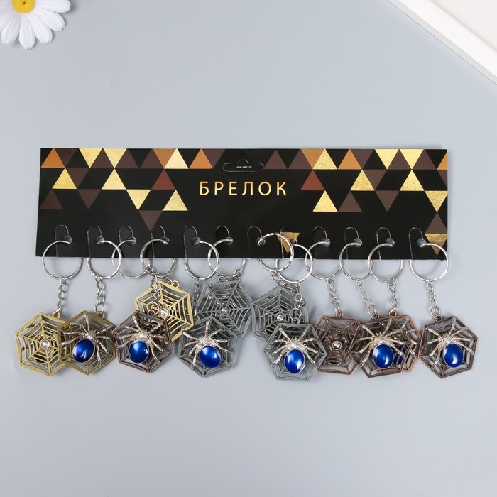 Брелок металл "Паук на паутине" серебро МИКС 3,7х4х4 см
