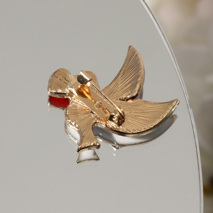 Брошь «Голуби» с сердечками, цвет бело-красный в золоте (неделимая фасовка 12 шт., цена за шт.)