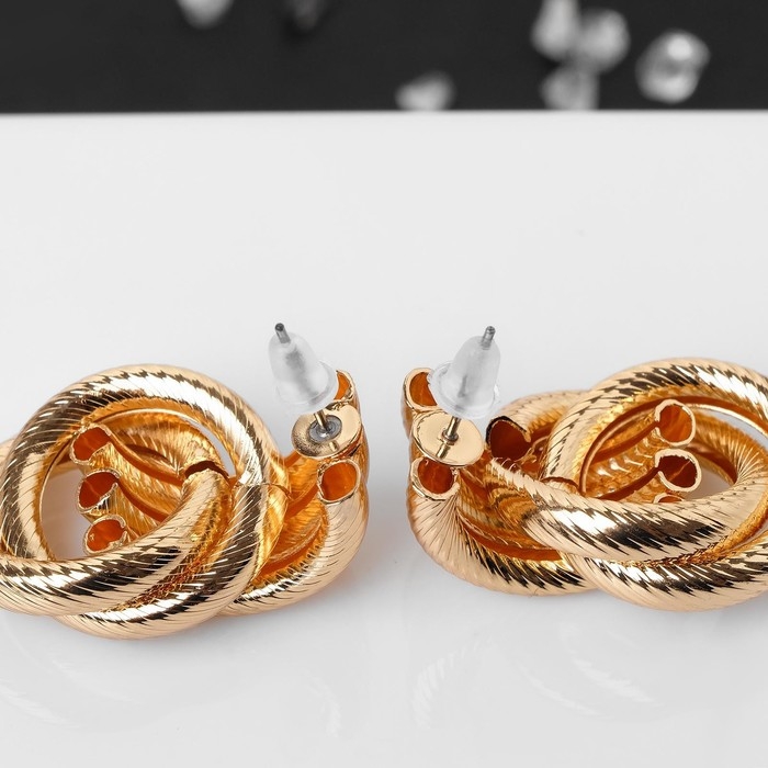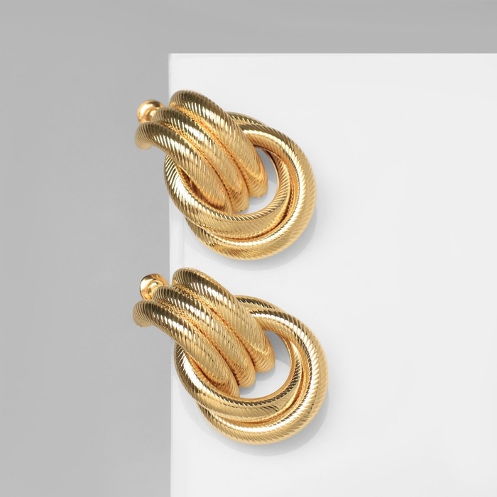 Серьги металл «Геометрия» три ряда колец, цвет золото
