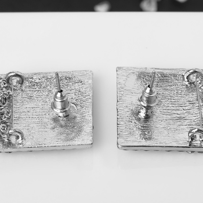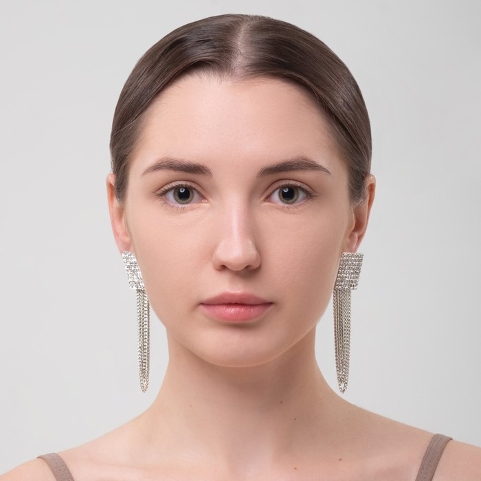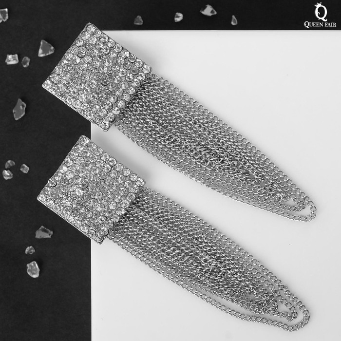 Серьги висячие со стразами «Голливуд» нити в квадрате, цвет белый в серебре, 9,5 см