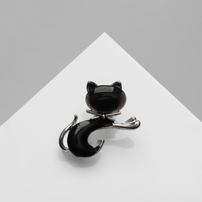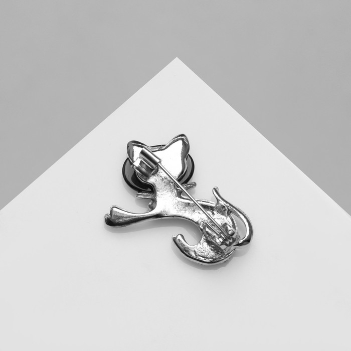 Брошь «Кошечка» с бантом, цвет чёрный в серебре