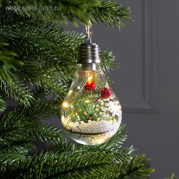 Ёлочный шар «Еловая ветка», батарейки, 5 LED, свечение тёплое белое