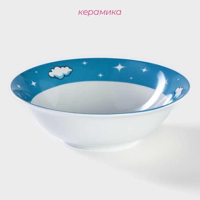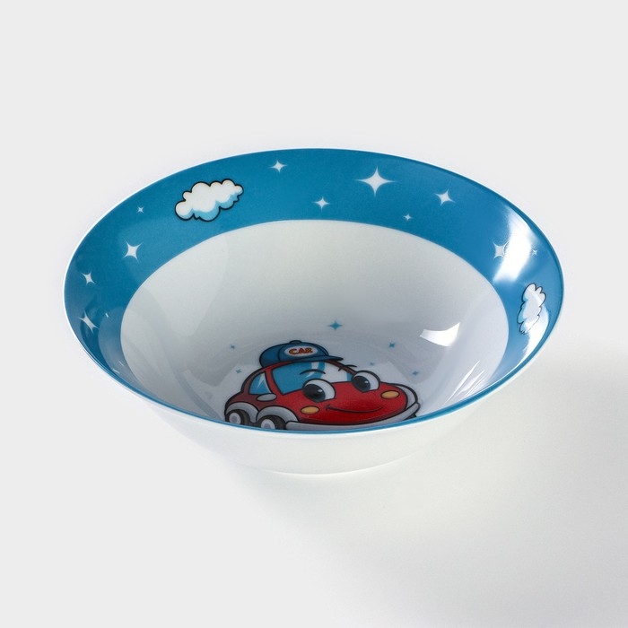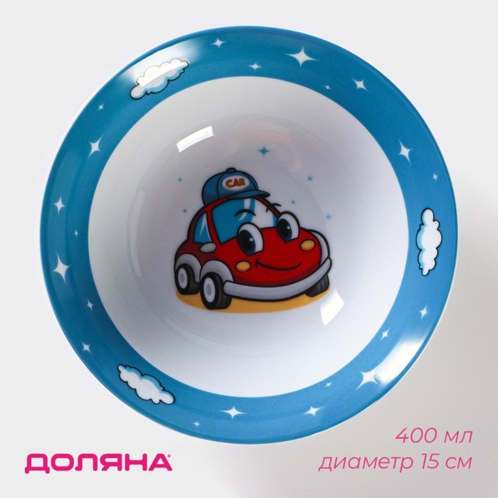 Тарелка керамическая глубокая Доляна «Машинка», 400 мл, d=15 см, цвет белый