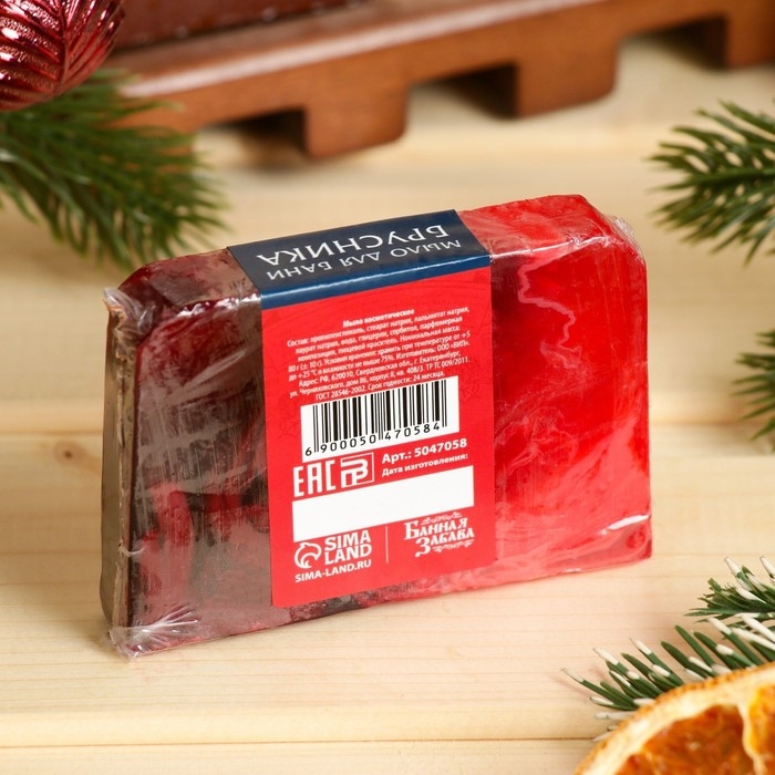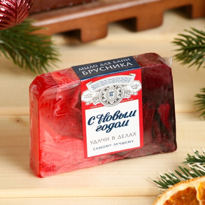 Мыло СПА - уход для бани и сауны "С Новым годом" брусника, Банная забава 80 гр