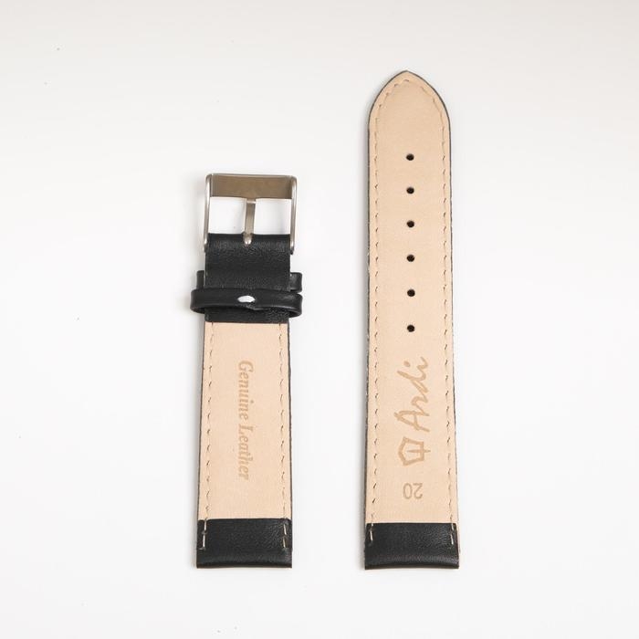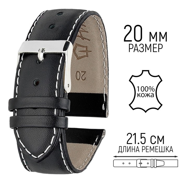 Ремешок для часов, мужской, 20 мм, запряжник 75 мм, горт 115 мм, натуральная кожа, чёрный