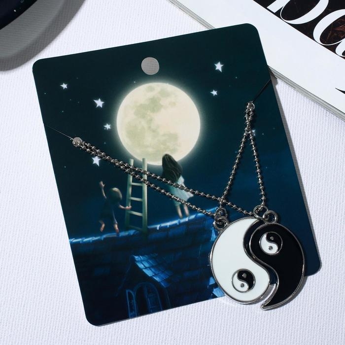 Кулоны на отрывной карточке «Неразлучники» сердце инь-янь, цвет чёрно-белый в серебре, 45 см
