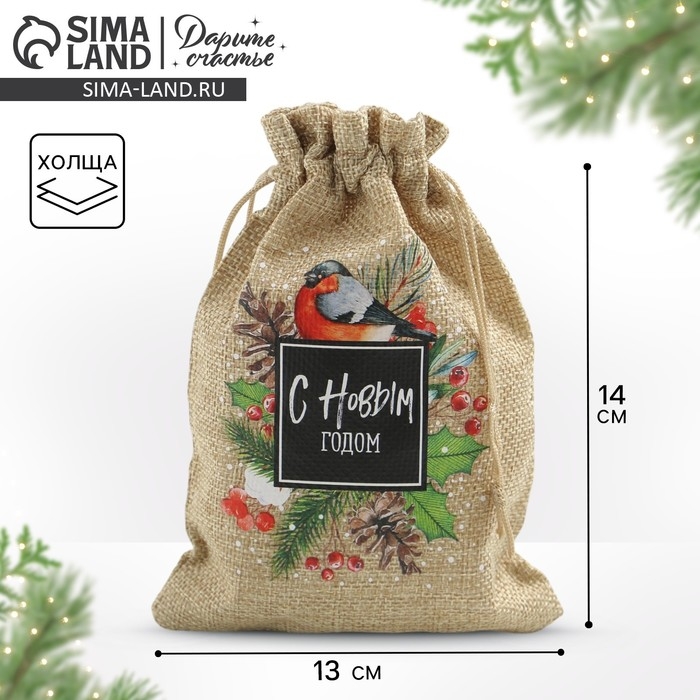 Мешок с термонаклейкой «Снегирь», 13 х 18 см +/- 1.5 см, Новый год