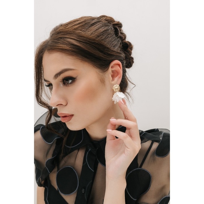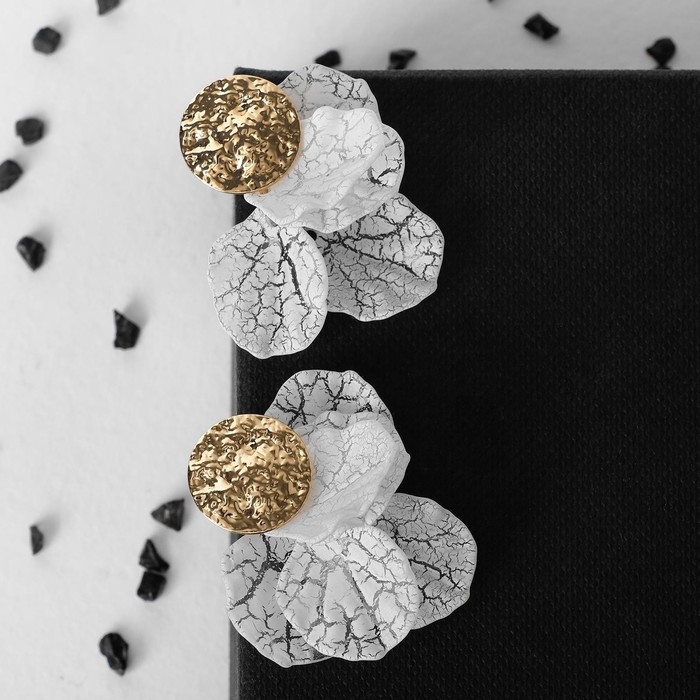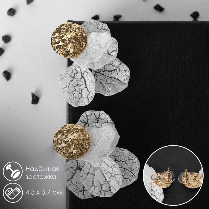 Серьги со съёмным элементом «Трансформер» клевер-сердце, цвет бело-бежевый в золоте