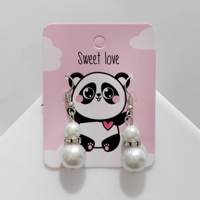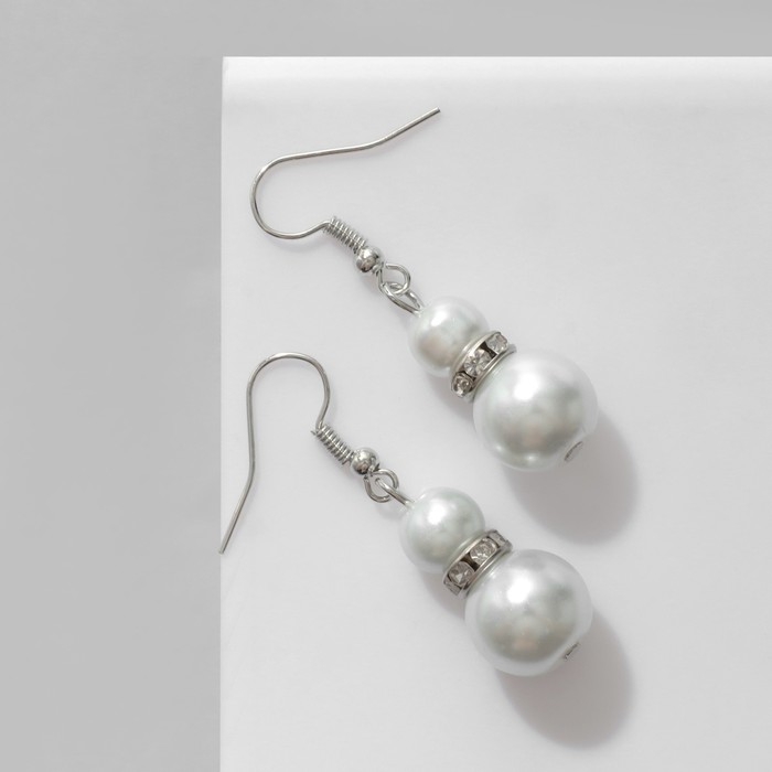 Серьги с жемчугом «Шарик двойной» sweet love, цвет белый в серебре